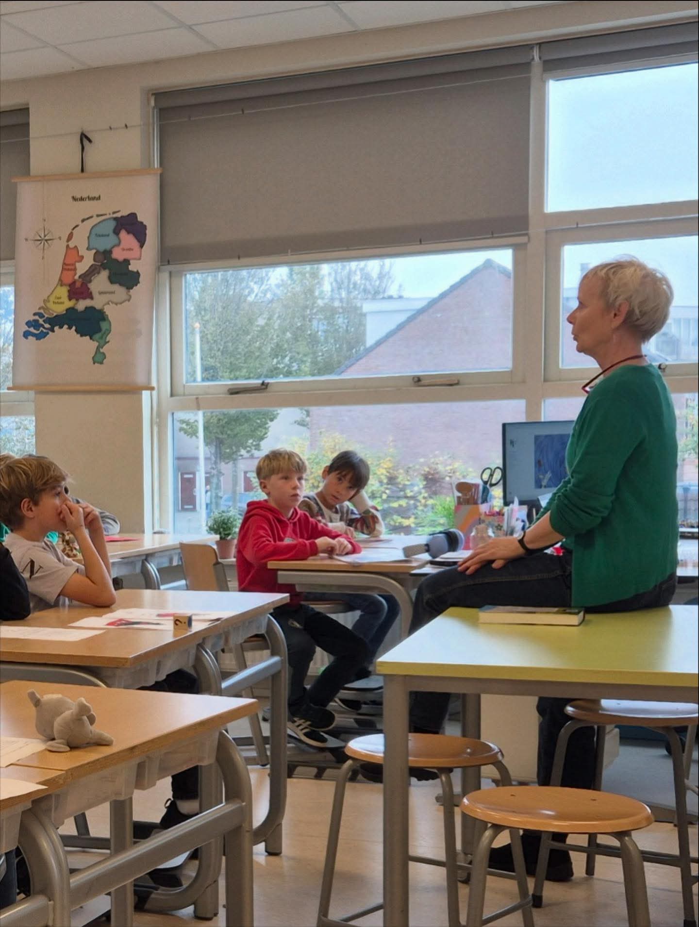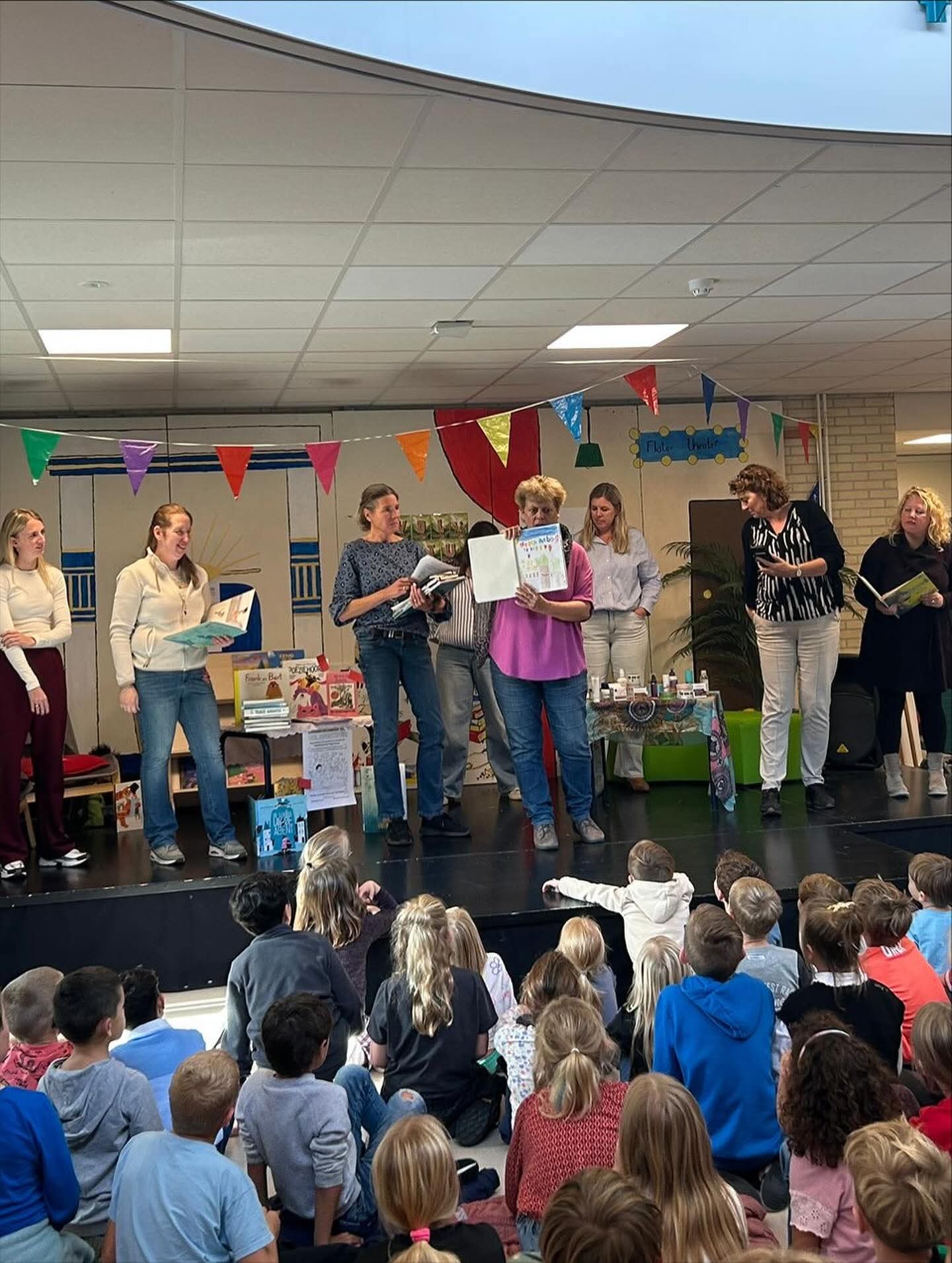 Het was een geweldige week vol verhalen, avontuur en leesplezier. We begonnen met een leuke startactiviteit en gingen daarvoor op speurtocht door de school. Ook kwamen er bijzondere gasten, zoals Van der Meer en Schrijfster Tiny Fisscher, die de kinderen inspireerden met mooie verhalen.